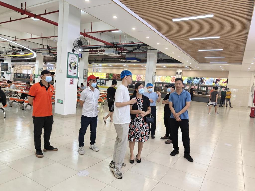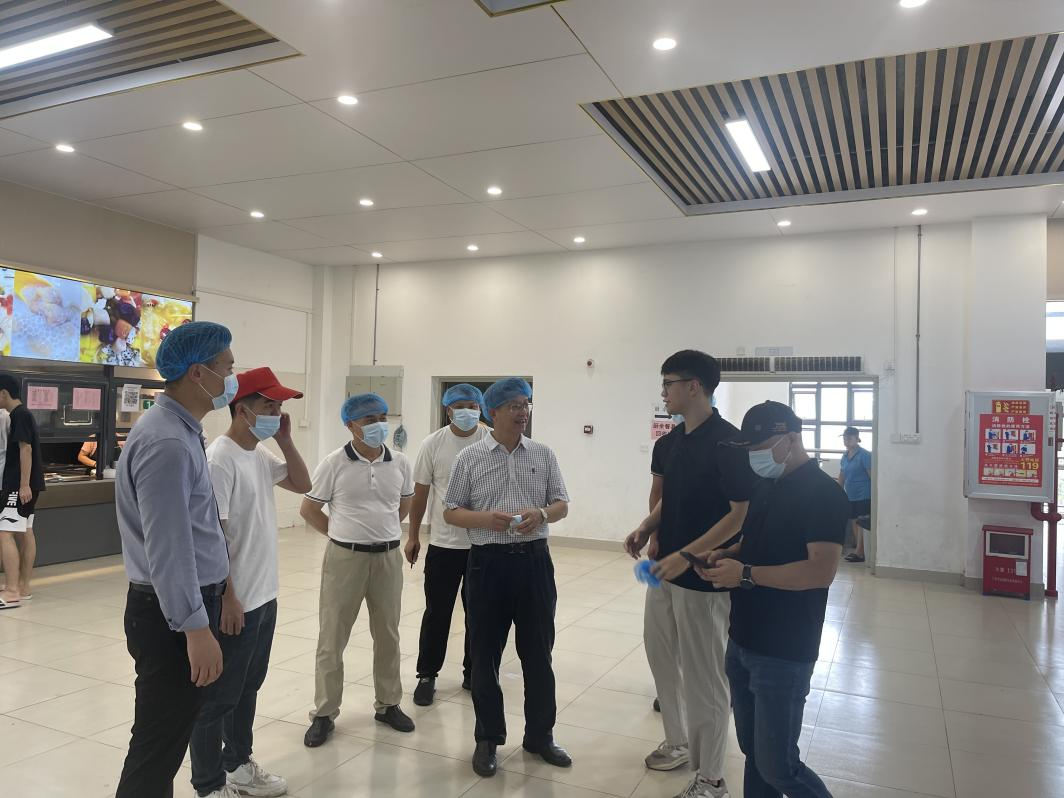 林业强重点检查了餐具消毒环节,现场查看消毒设备运行状态,并随机抽检已消毒餐具,仔细询问消毒流程和频次。随后,林业强与食堂工作人员深入交流,了解食品加工制作过程中的具体操作规范和安全保障措施。针对检查中发现的部分卫生死角清理不及时问题,林业强书记要求后勤管理部门立即整改,加强日常清洁维护工作,定期对食堂环境卫生进行全面检查和整治,为师生营造干净、整洁、舒适的用餐环境。