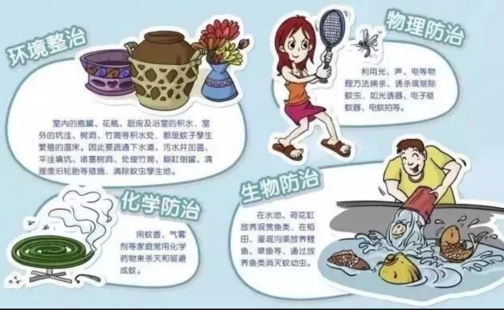 ● 物理防护:在蚊虫活跃时段(清晨和傍晚)尽量减少户外活动,如需外出,穿长袖上衣、长裤,选择浅色衣物;室内安装纱门、纱窗,使用蚊帐(尤其适合婴幼儿和老人)。