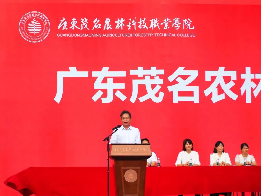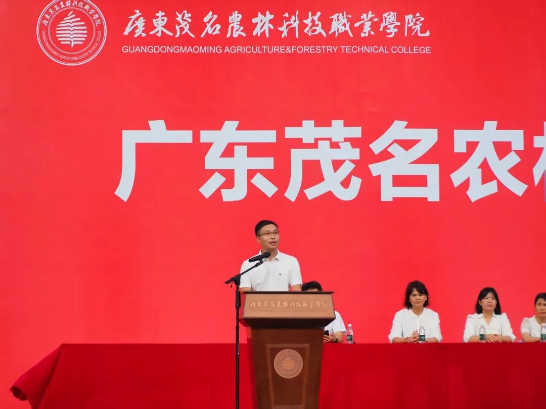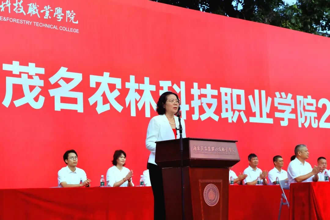 董艳清强调,2025年是抗战胜利80周年,也是“十四五”收官和“十五五”谋划之年。新生们肩负着强国复兴的时代使命。她介绍了学校2018年办学以来在专业建设、人才培养和社会服务等方面取得的成果,包括多个省级示范基地认定、师生大赛屡获佳绩,以及服务“百千万工程”“绿美茂名”等实践贡献。她寄语新生与学校“双向奔赴”,如涓流汇入江河、奔涌入海,用技能报国书写青春华章。