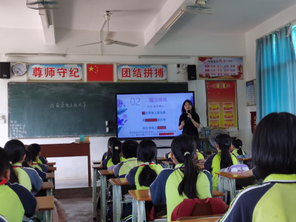 本次帮扶以第28届全国推广普通话宣传周为契机,为加大国家通用语言文字推广力度,筑牢强国语言的基石,学校教师通过生动精彩的“声音模仿秀”,向同学们讲授了朗诵技巧,学生感受到普通话的规范之美,在课堂上跃跃欲试,反响积极。