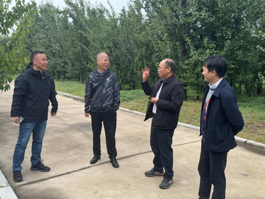 上图:林思诚副校长(左二)率领调研组赴辽宁省果树研究所国家李杏种质资源圃开展调研工作