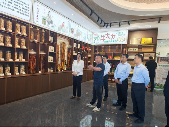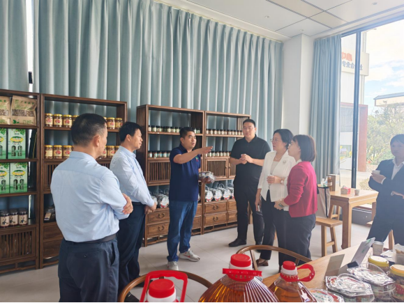 图为董艳清一行调研调研谭儒农副产品的深加工情况