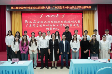 为全面普及大学生职业生涯规划知识,提高大学生的创新能力、实践能力和就业能力,引导大学生树立正确的成才观、择业观和就业观,合理规划学业与职业发展,提升就业竞争力,2025年12月5日下午,由教务部主办的第三届全国大学生职业规划大赛广东茂名农林科技职业学院校赛在行政楼一楼会议室顺利举行。