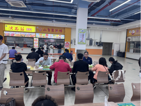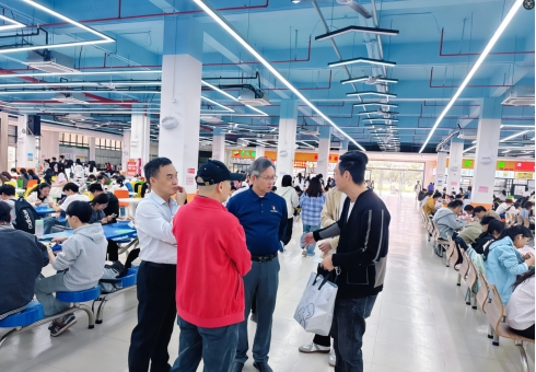 检查结束后,林业强一行在食堂开展陪餐工作,与同学们同堂就餐、亲切交流,近距离感受菜品口味、就餐体验,现场听取学生对餐饮服务的真实反馈,针对大家提出的意见建议逐一回应,并要求后勤管理部门及食堂运营方立行立改、优化提升,切实以学生需求为导向,持续丰富菜品品类、提升饭菜质量、优化服务细节,为全校师生提供更安全、优质、贴心的餐饮服务保障。