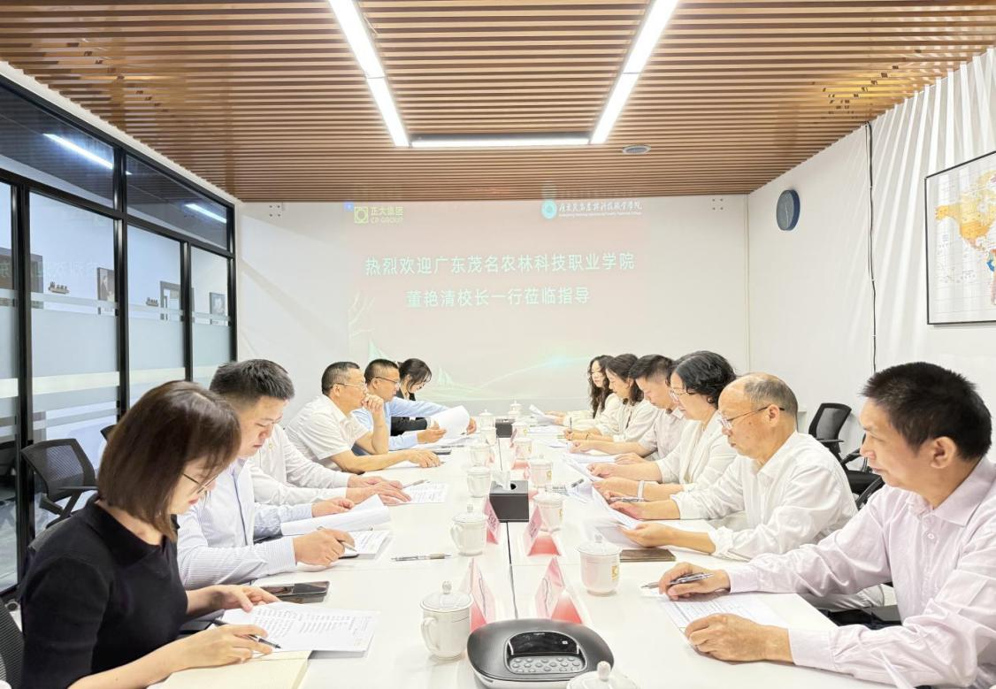 正大集团广东区生猪养殖事业助理副总裁胡双海,正大饲料(湛江)有限公司总经理马志红,正大(湛江)现代农业投资有限公司总经理张建红,广东湛江&海南区人力资源总监郭峻宇、总裁助理李雅文、招聘经理陈明乐、培训副经理肖裕林,以及我校优秀校友代表吴瑞娇、林焕热情接待了我校一行,双方围绕深化校企合作、促进毕业生高质量就业等核心事宜展开初步对接。