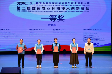 近日,2025“一带一路暨金砖国家技能发展与技术创新大赛——第二届数智农业种植技术创新赛项”全国总决赛在云南省红河州圆满落幕。由我校现代农业学院师生组成的代表队奋勇拼搏,从全国137支高职院校参赛队伍中脱颖而出,斩获多项荣誉:滕丽丽老师荣获教师组一等奖,蔡紫玲老师荣获教师组三等奖;学生团队中,郑子洛、何志勇荣获二等奖,曾东英、黄梅花荣获三等奖;学校获“优秀组织奖”。师生同台竞技、拼搏接力,在全国性舞台上充分展现了我校师生积极进取、奋勇争先的精神风貌。