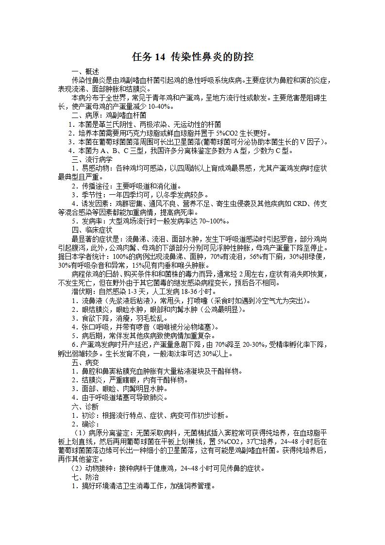 任务14 传染性鼻炎的防控.docx